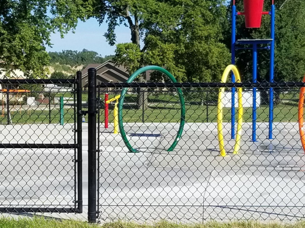 Our commercial colored chain link fence systems use only galvanized chain link fabric, fittings and framework underneath a powder coated finish on the framework and a smooth vinyl finish on the fabric. Using only high strength tubing with a polymer clear coat and heavy gauge chain link fabric, the system is designed to provide years of security while maintaining a unique high profile colored finish. Each system is designed to meet industry standards. Do you want to add screening, have a unique design or anticipate unusual site conditions, please contact us so that we may assist in custom designing your system.